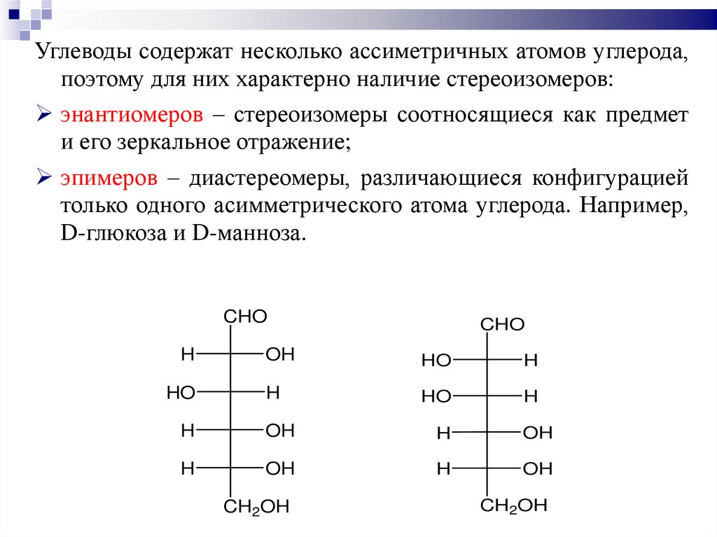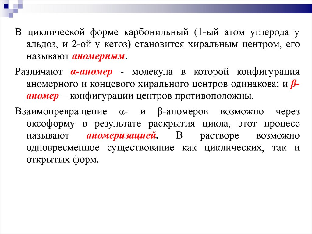 аномерного и концевого хирального центров одинакова; и βаномер – конфигурации центров противоположны.