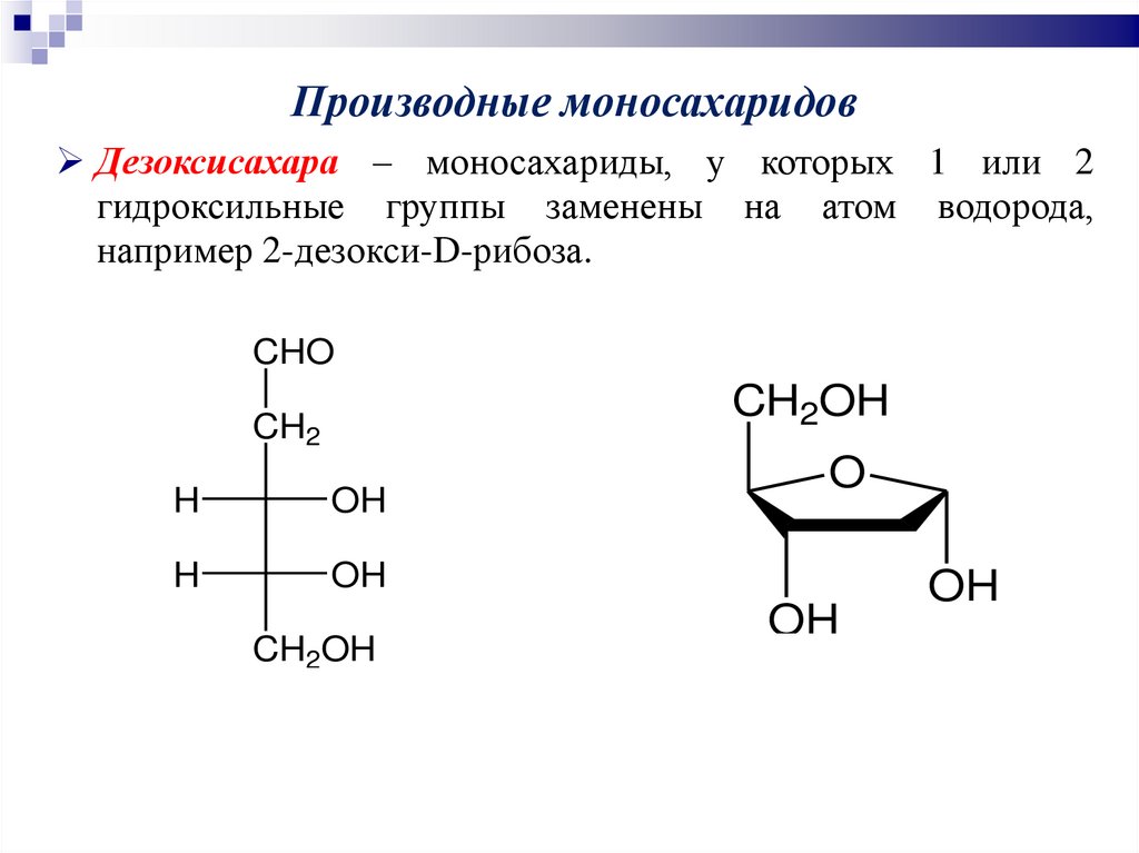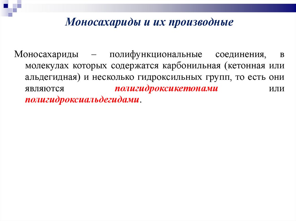 Моносахариды и их производныеМоносахариды – полифункциональные соединения, в