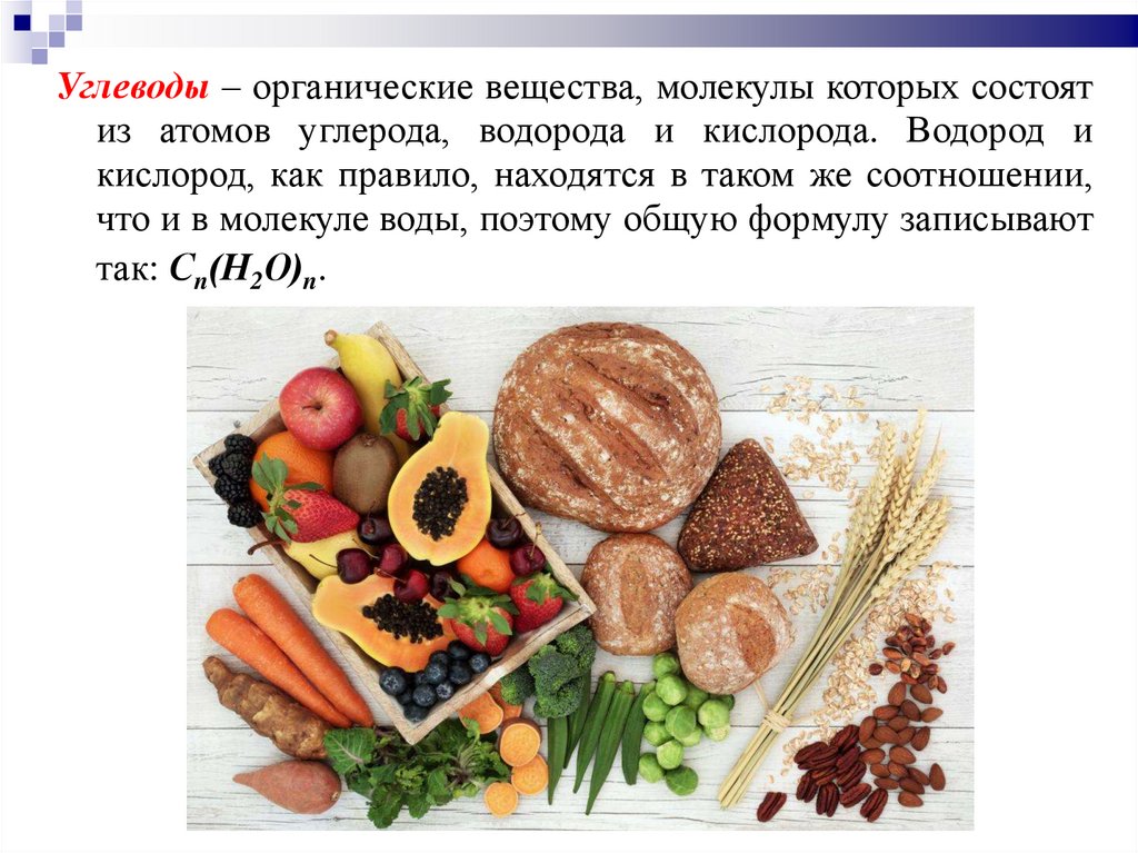 Углеводы – органические вещества, молекулы которых состоятиз атомов углерода, водорода и кислорода. Водород и