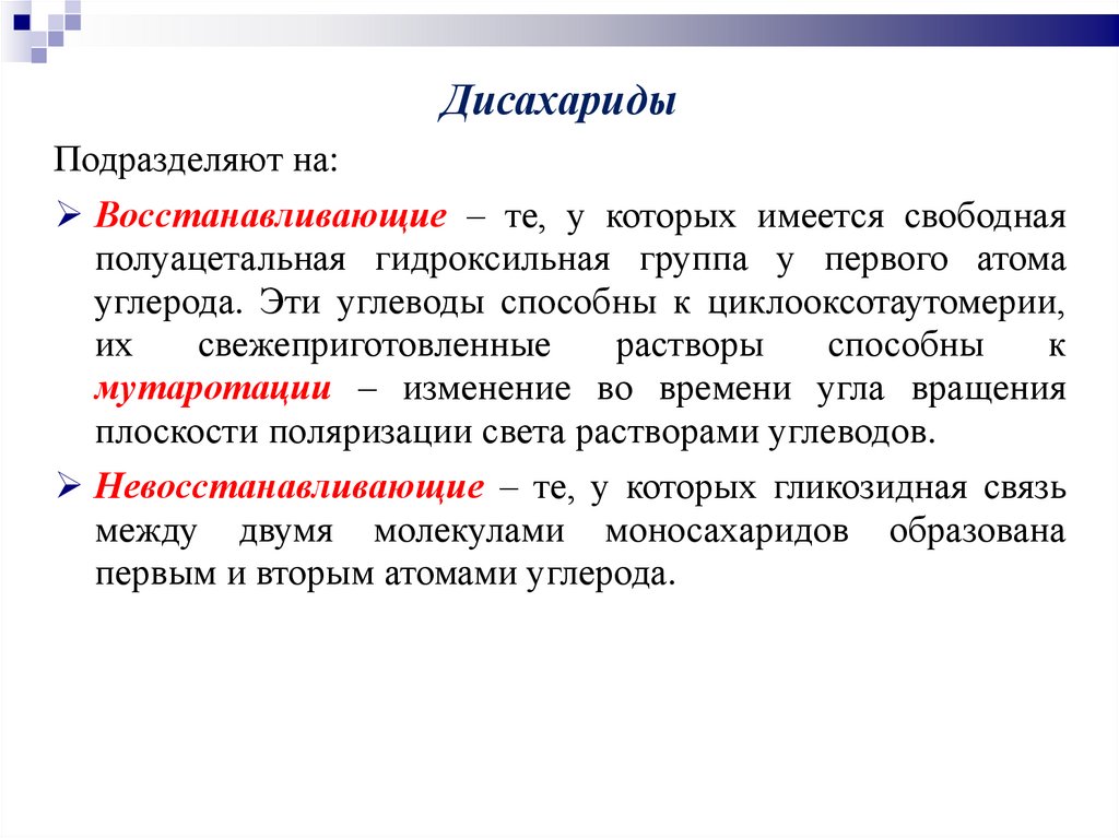 и невосстанавливающих дисахаридов.