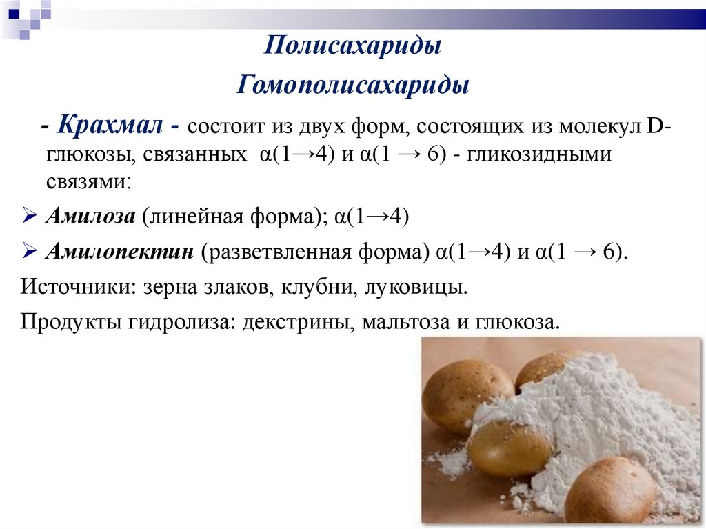 Гомополисахариды – состоят из углеводных остатков