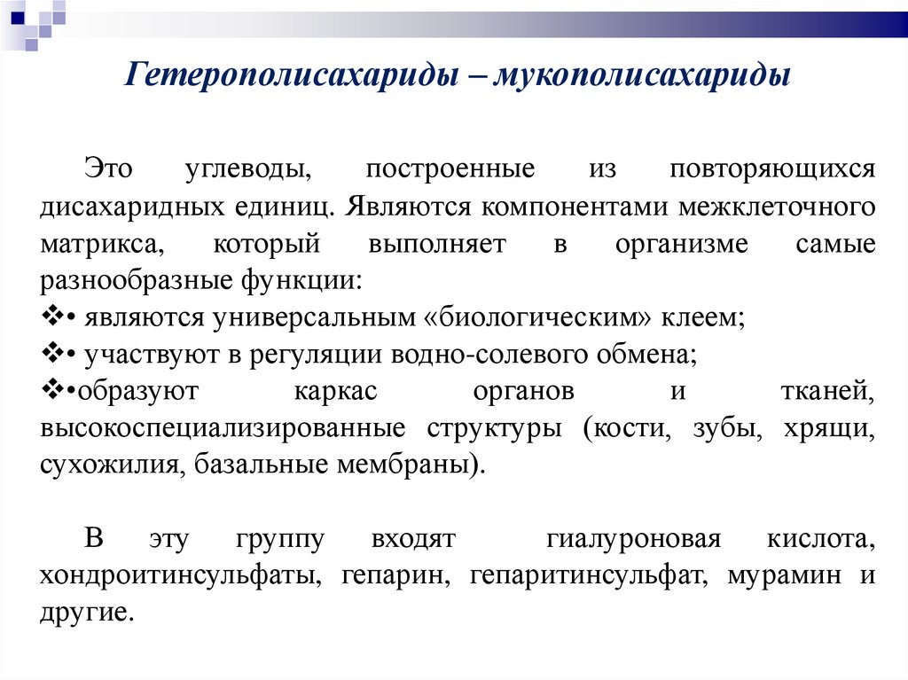 дисахаридных единиц. Являются компонентами межклеточного