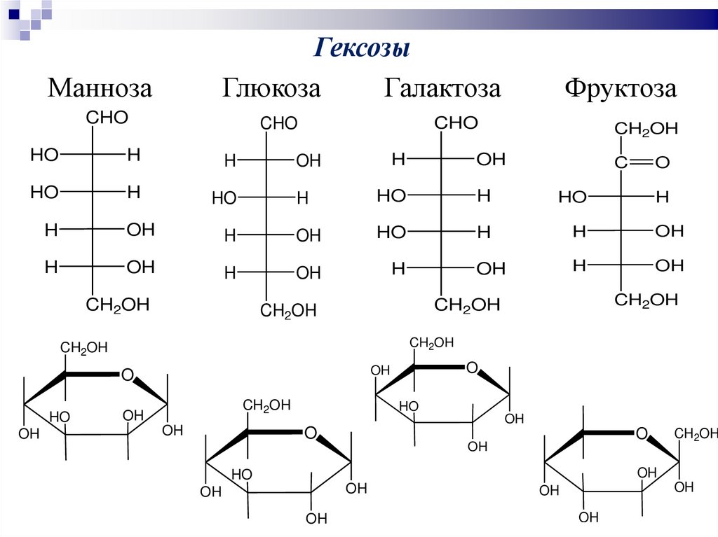 гексозы (глюкоза, фруктоза, галактоза) и т.д.