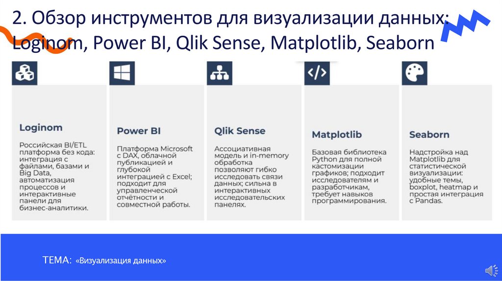2. Обзор инструментов для визуализации данных:Loginom, Power BI, Qlik Sense, Matplotlib, Seaborn