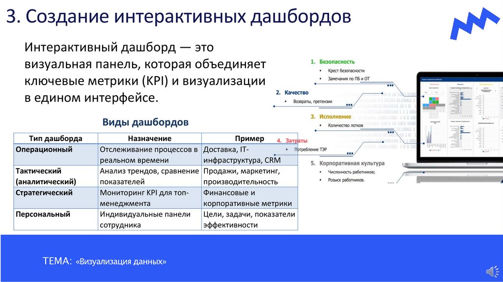 3. Создание интерактивных дашбордовИнтерактивный дашборд — это
