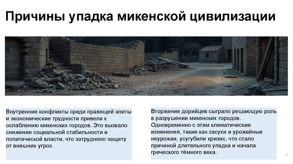 Причины упадка микенской цивилизацииВнутренние конфликты среди правящей элиты