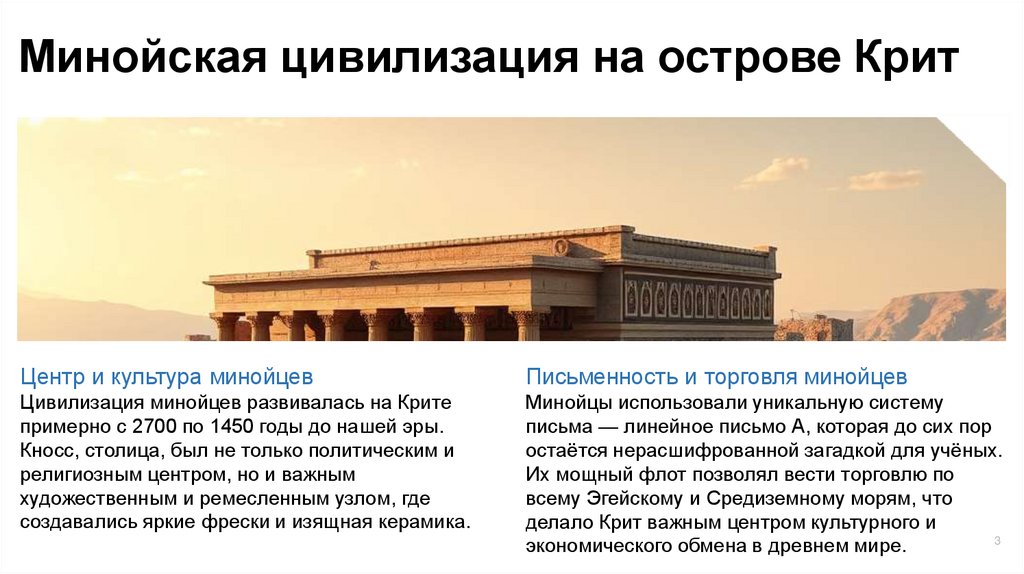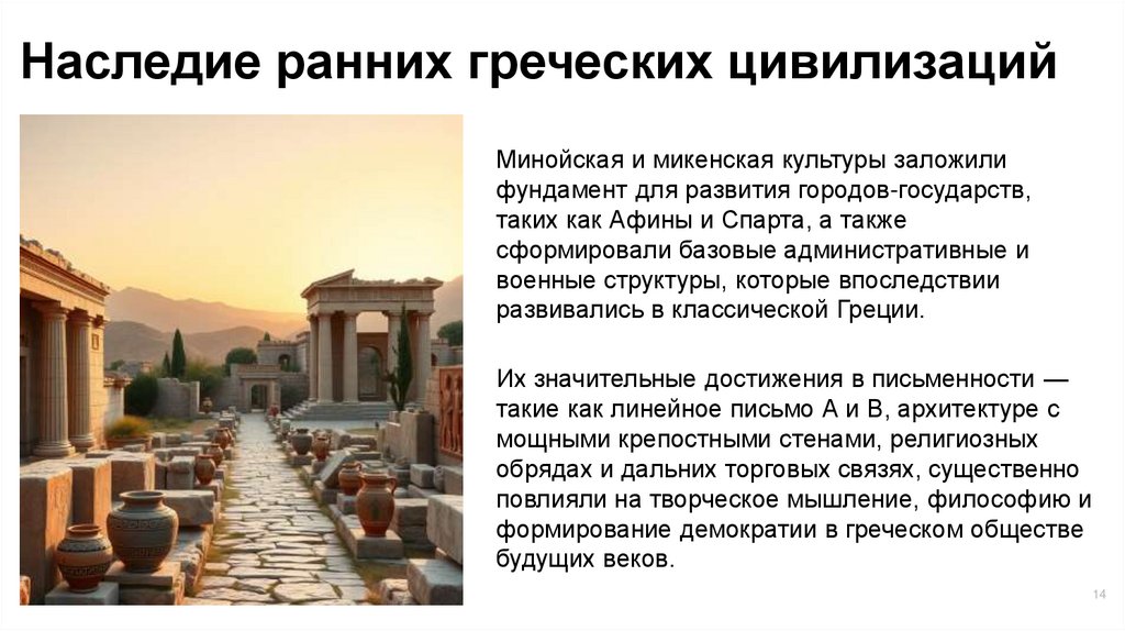 Наследие ранних греческих цивилизацийМинойская и микенская культуры заложили