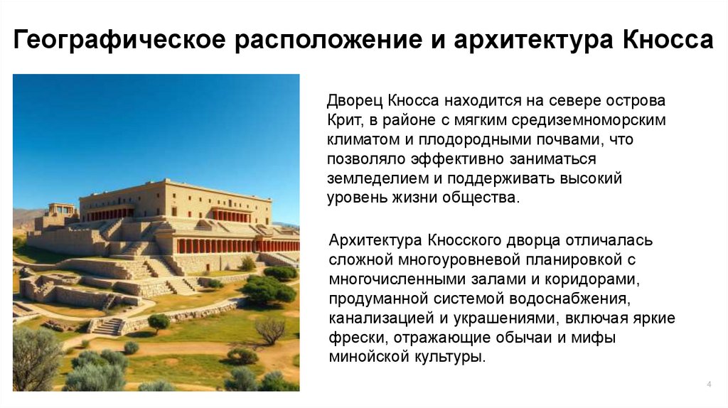 Географическое расположение и архитектура КноссаДворец Кносса находится на севере острова
