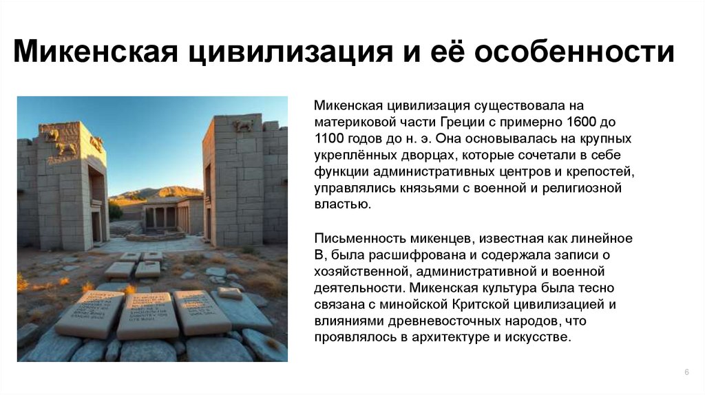 Микенская цивилизация и её особенностиМикенская цивилизация существовала на