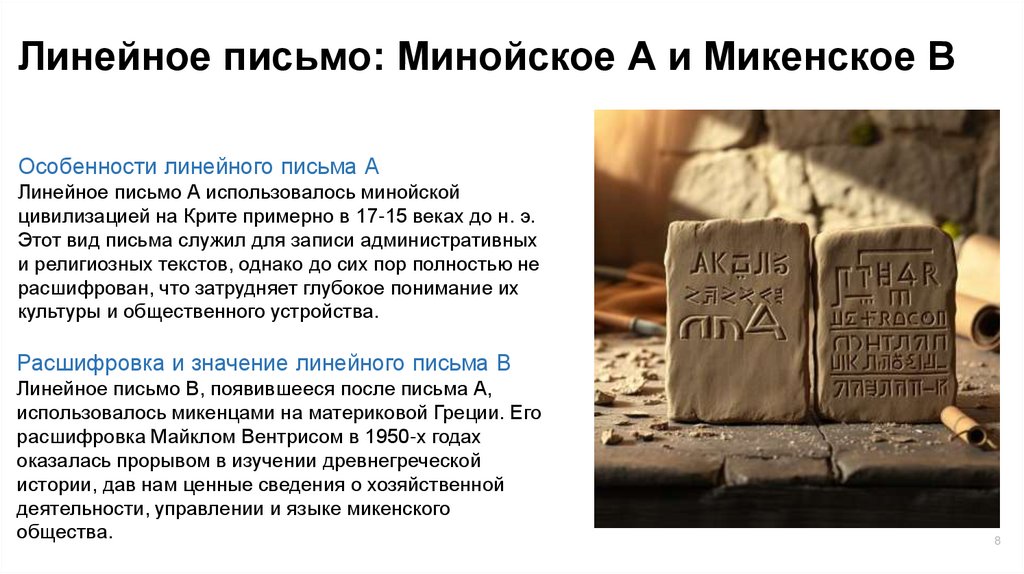 Линейное письмо: Минойское А и Микенское ВОсобенности линейного письма А