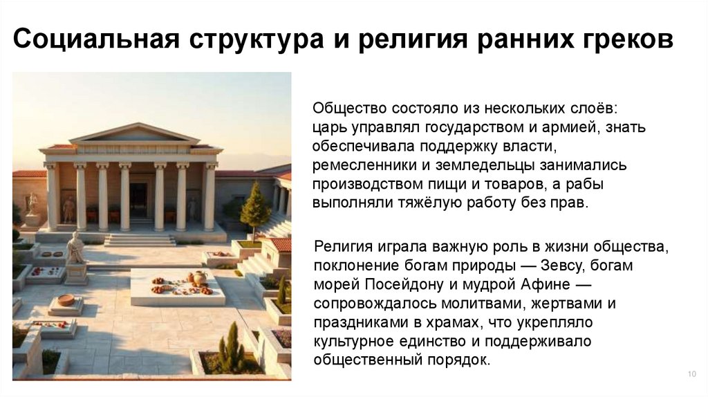 Социальная структура и религия ранних грековОбщество состояло из нескольких слоёв: