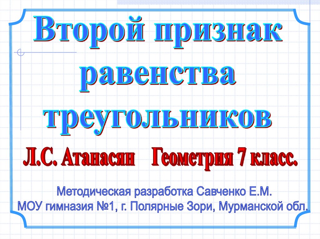 II признак равенства треугольниковпо стороне и двум прилежащим к ней углам.