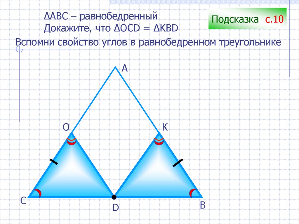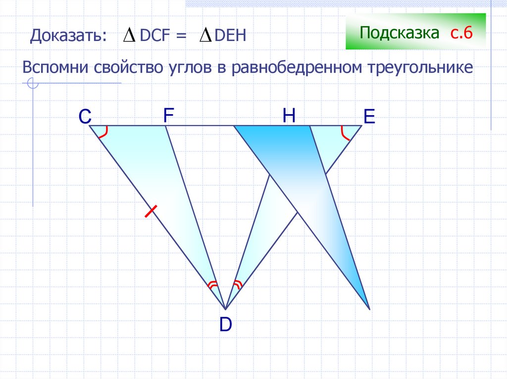 Для красного треугольника найдите равныйи щёлкните по нему мышкой.
