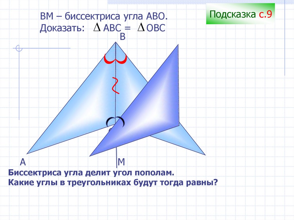 ВM – биссектриса угла АВО, луч МВ – биссектриса угла АМОДоказать: АВМ = ОВМ