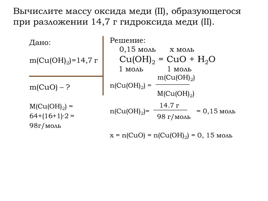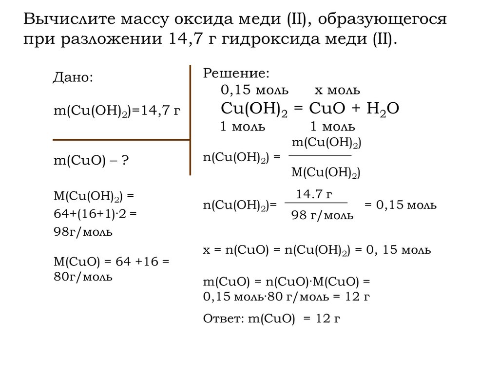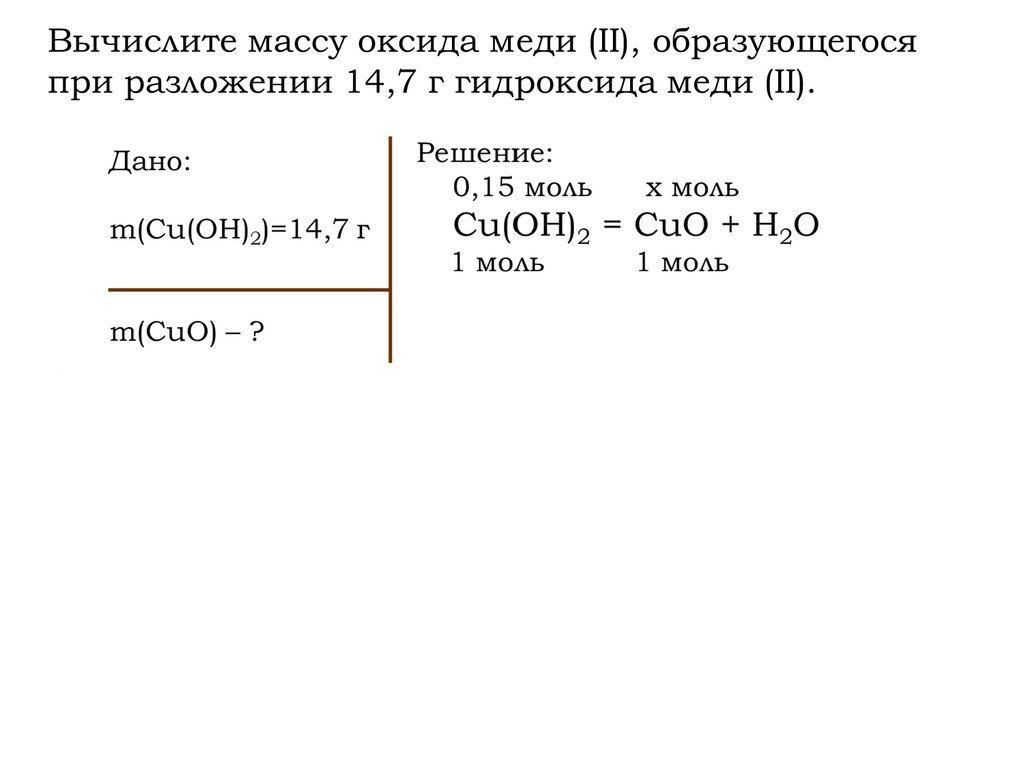 Вычислите массу меди, которая