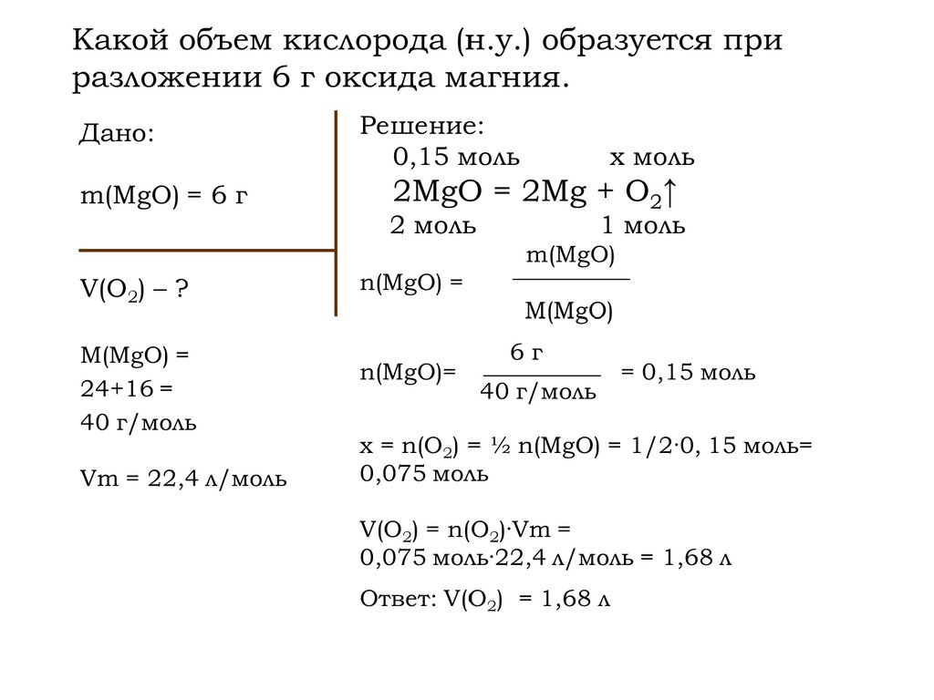• Вычислите объем (н.у.) газа, который