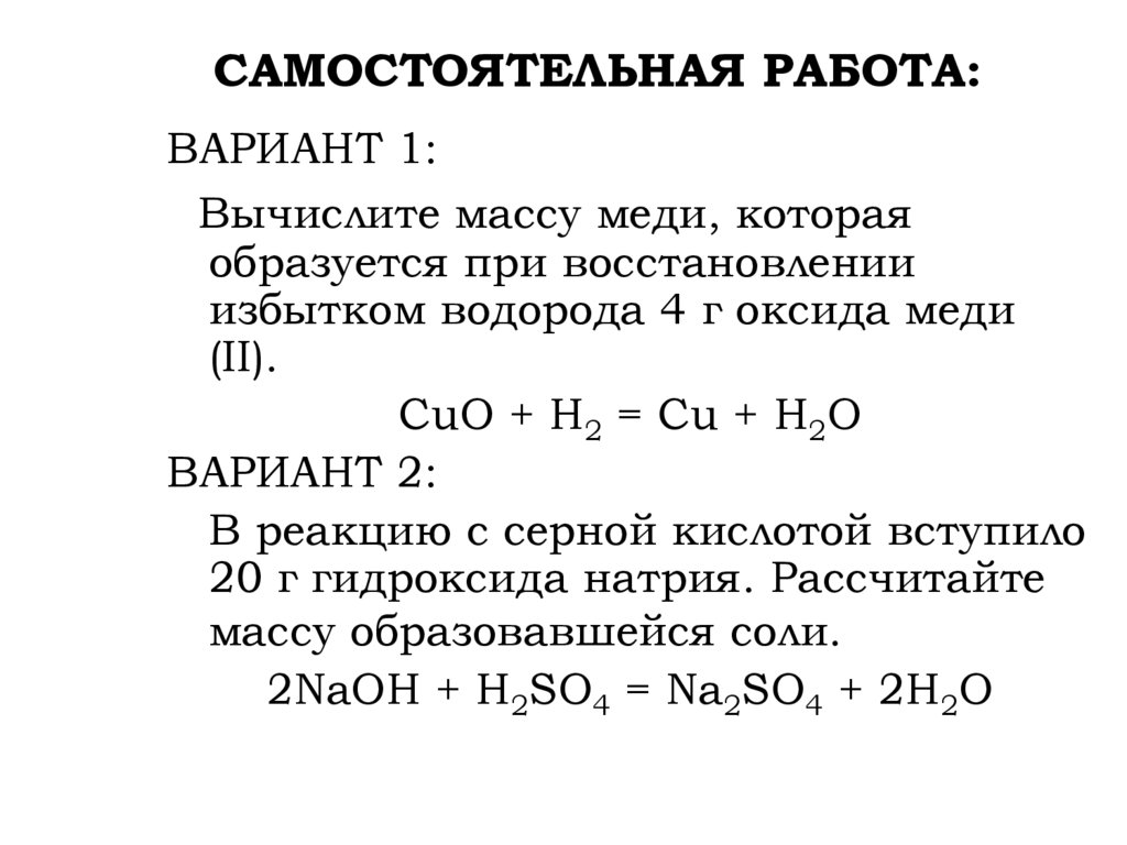 избытком водорода 4 г оксида меди