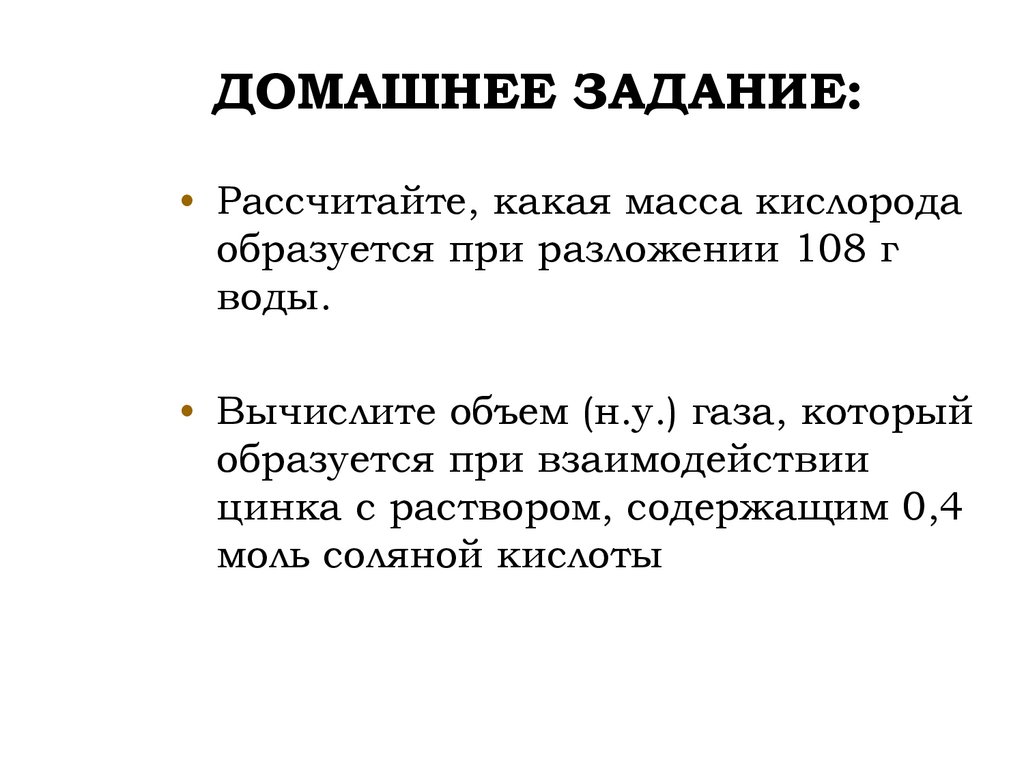 ДОМАШНЕЕ ЗАДАНИЕ:• Рассчитайте, какая масса кислорода