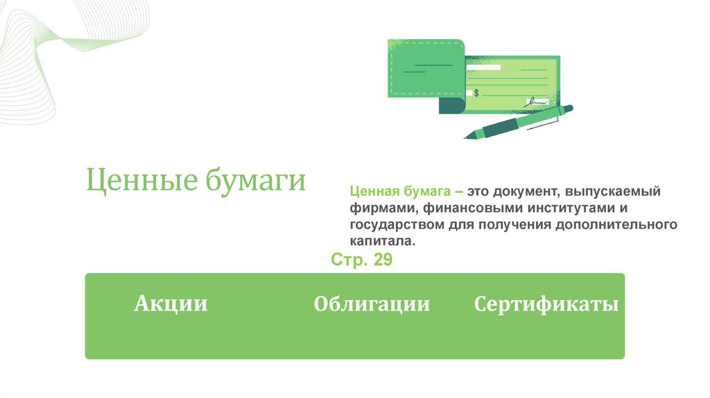 Ценные бумагиЦенная бумага – это документ, выпускаемый