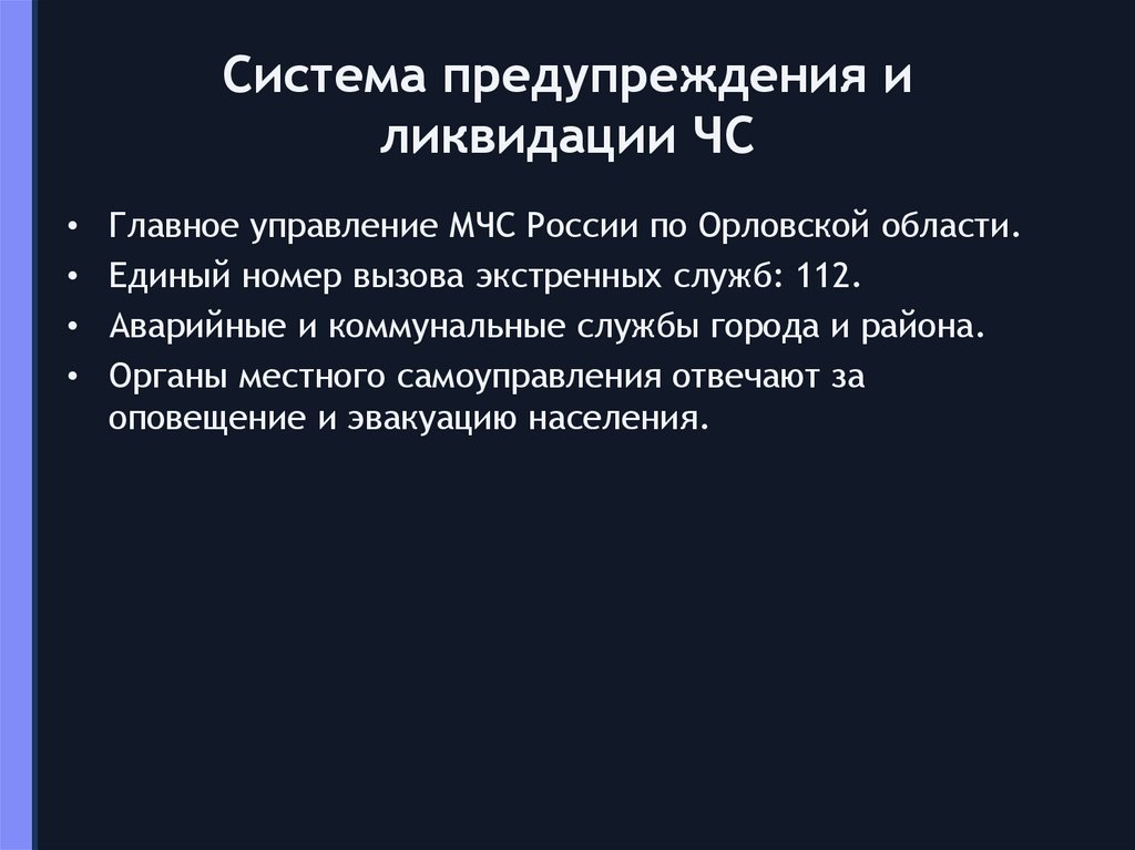 Основные виды ЧС в Орловской области• Природные (паводки, грозы, сильный ветер, метели).