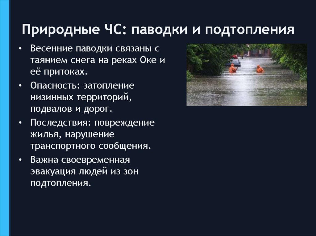Природные ЧС: паводки и подтопления• Весенние паводки связаны с