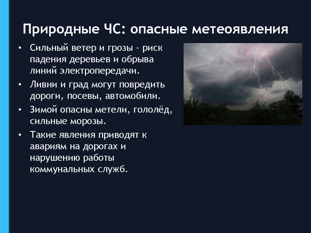 Природные ЧС: опасные метеоявления• Сильный ветер и грозы – риск