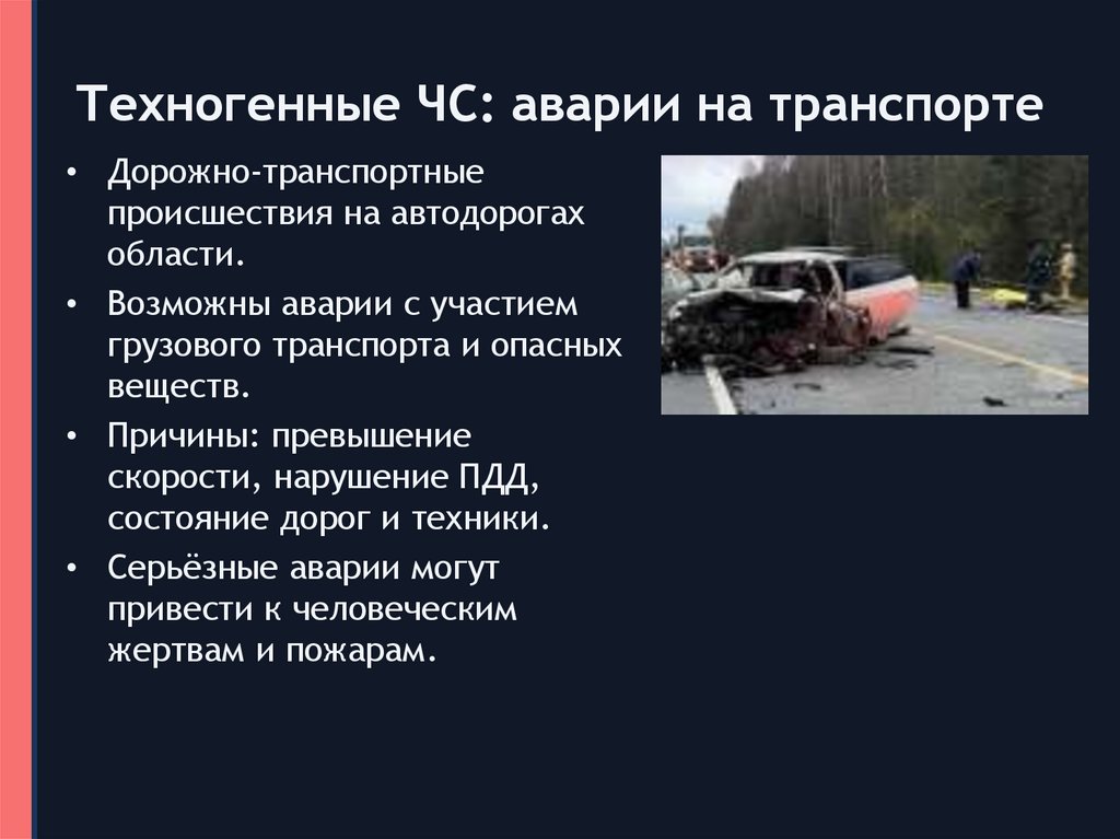 Техногенные ЧС: аварии на транспорте• Дорожно-транспортные