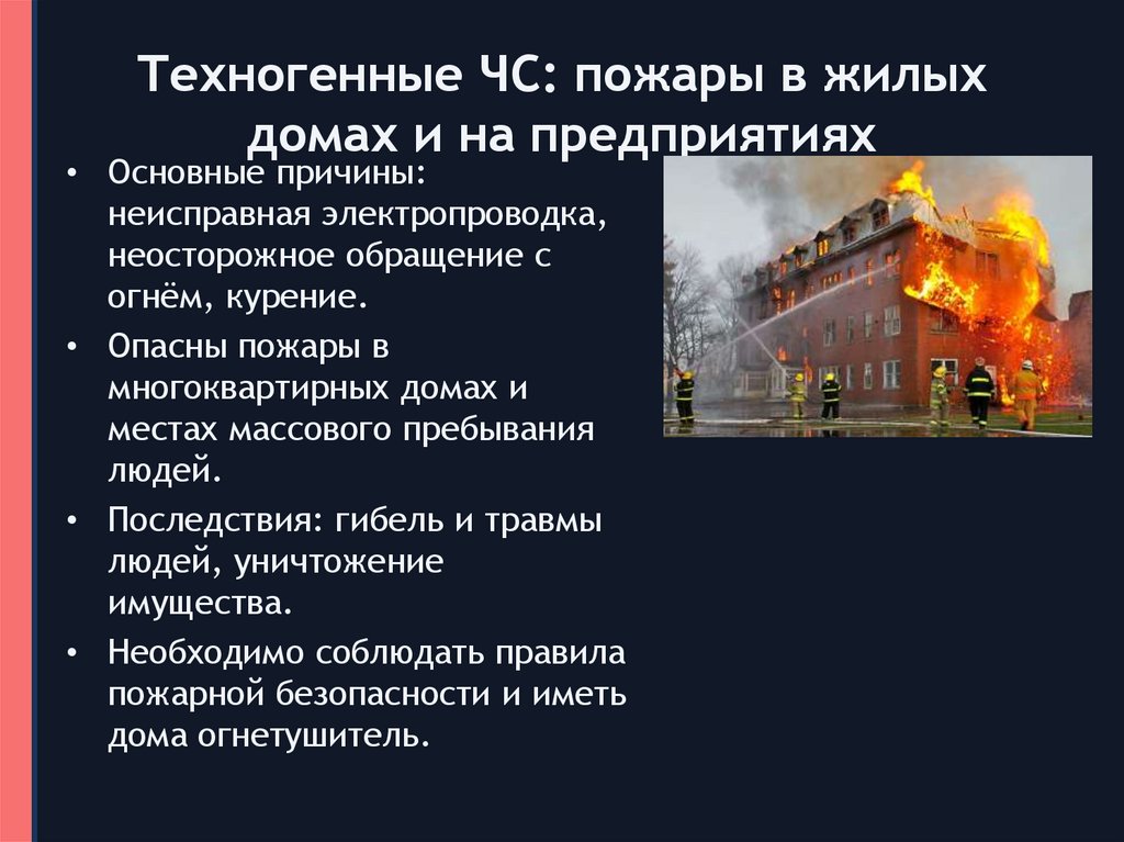 Техногенные ЧС: пожары в жилыхдомах и на предприятиях