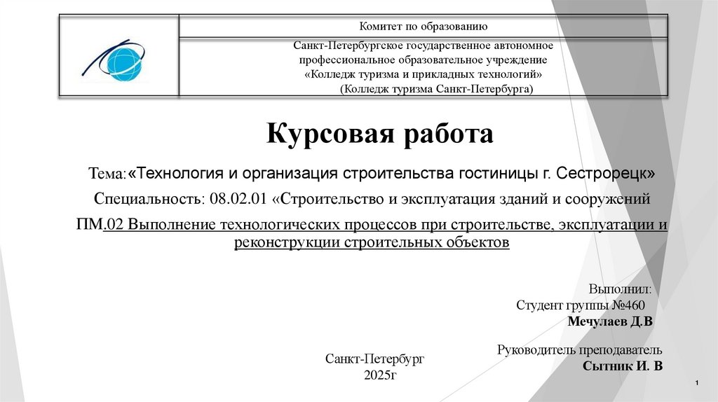 Тема:«Технология и организация строительства гостиницы г. Сестрорецк»