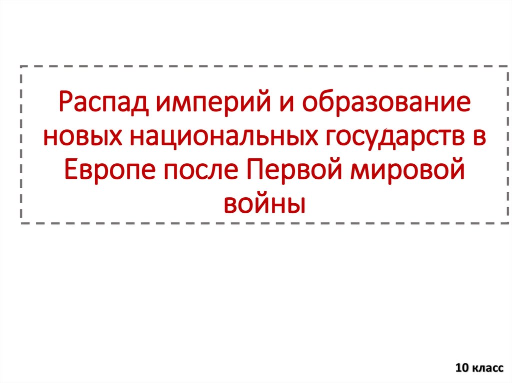 1. Распад империй и образование новых национальных государств в Европе после Первой мировой войны
