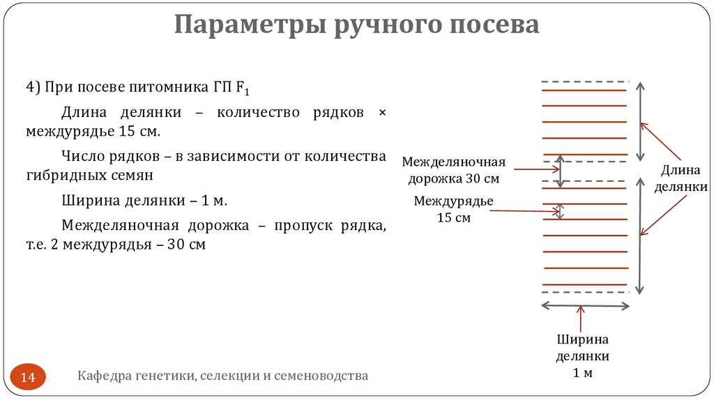 Ширина межделяночных дорожек при ручном посеве и посеве
