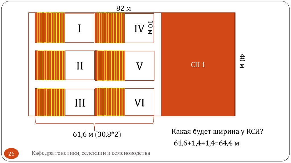 делянки плюс межполосной дорожки, длина –