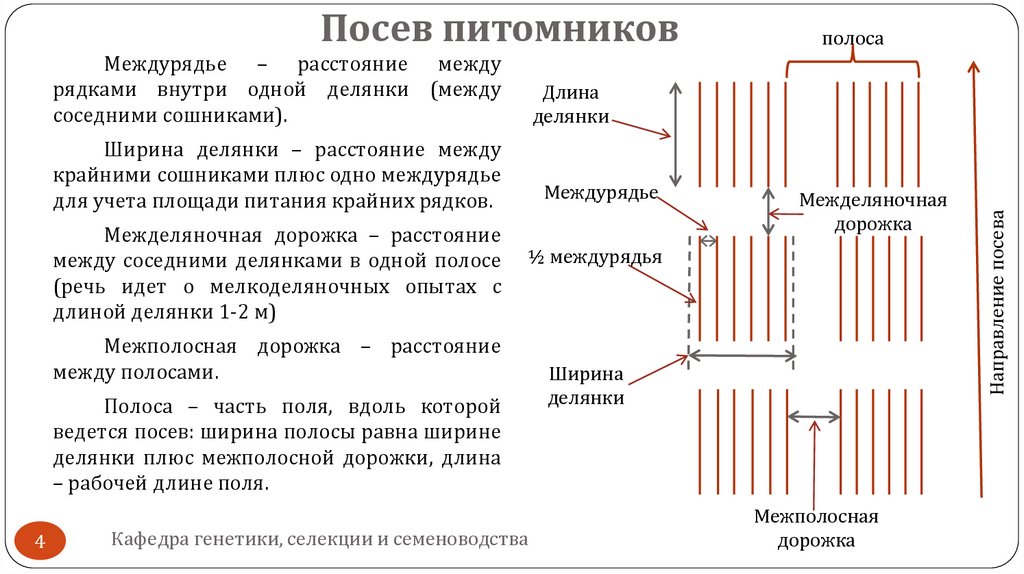 Междурядье – расстояние междурядками внутри одной делянки (между