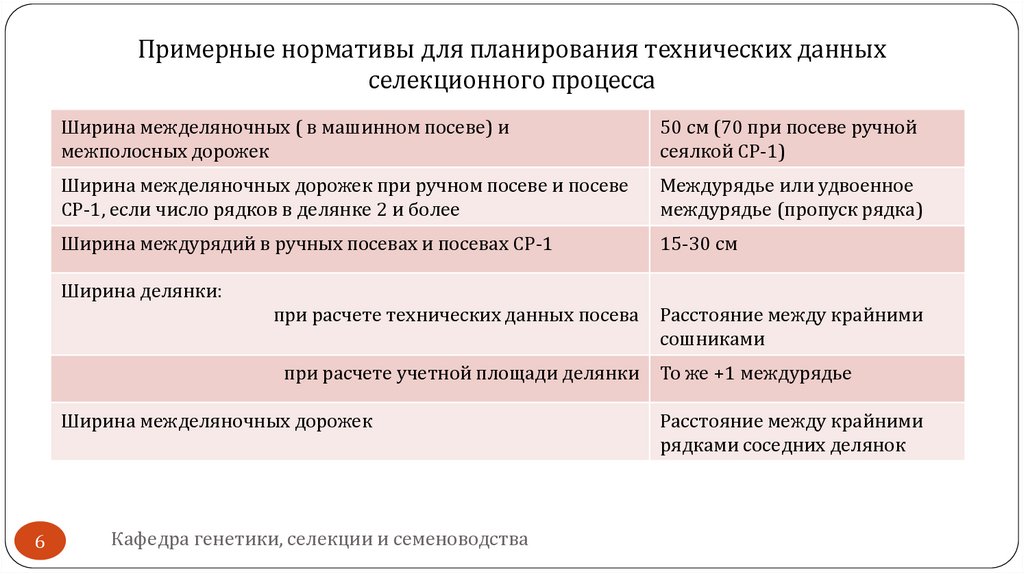 Примерные нормативы для планирования технических данныхселекционного процесса