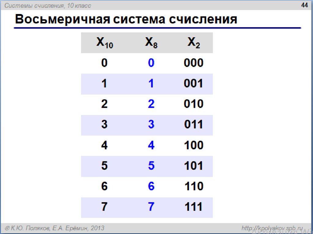 Системы счисления, 10 класс2