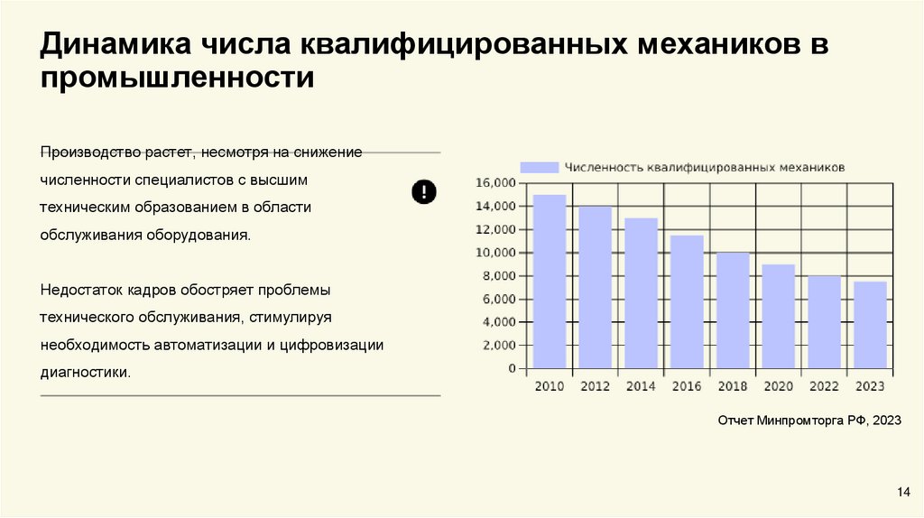 Динамика числа квалифицированных механиков впромышленности