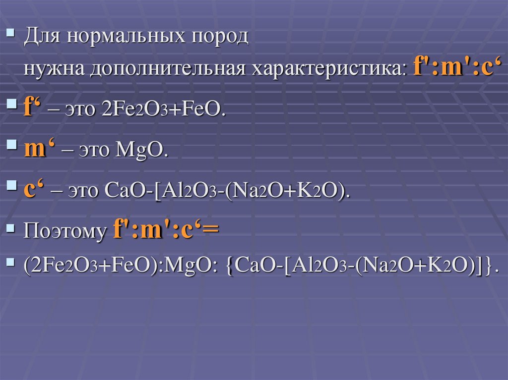 Для нормальных породнужна дополнительная характеристика: f':m':c‘