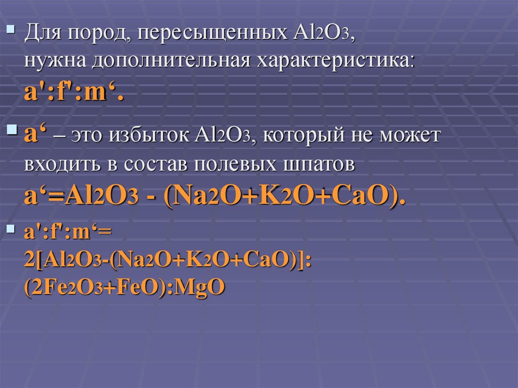 Для пород, пересыщенных Al2O3,нужна дополнительная характеристика: