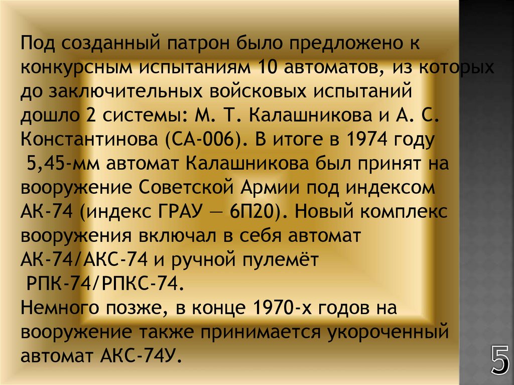 Под созданный патрон было предложено кконкурсным испытаниям 10 автоматов, из которых