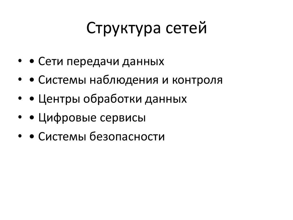Структура сетей• • Сети передачи данных