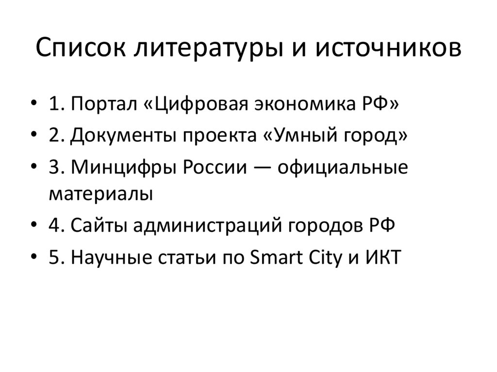 Список литературы и источников• 1. Портал «Цифровая экономика РФ»