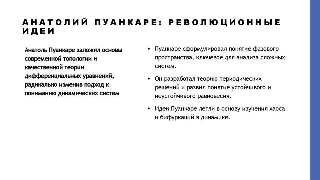• Идеи Пуанкаре легли в основу изучения хаоса