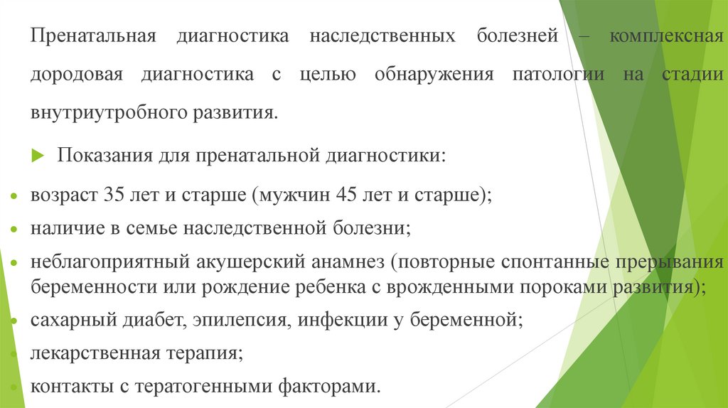 Пренатальная диагностика наследственных болезней – комплекснаядородовая диагностика с целью обнаружения патологии на стадии