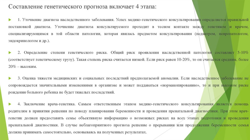 4. Заключение врача-генетика. Самым ответственным этапом медико-генетического консультирования является помощь