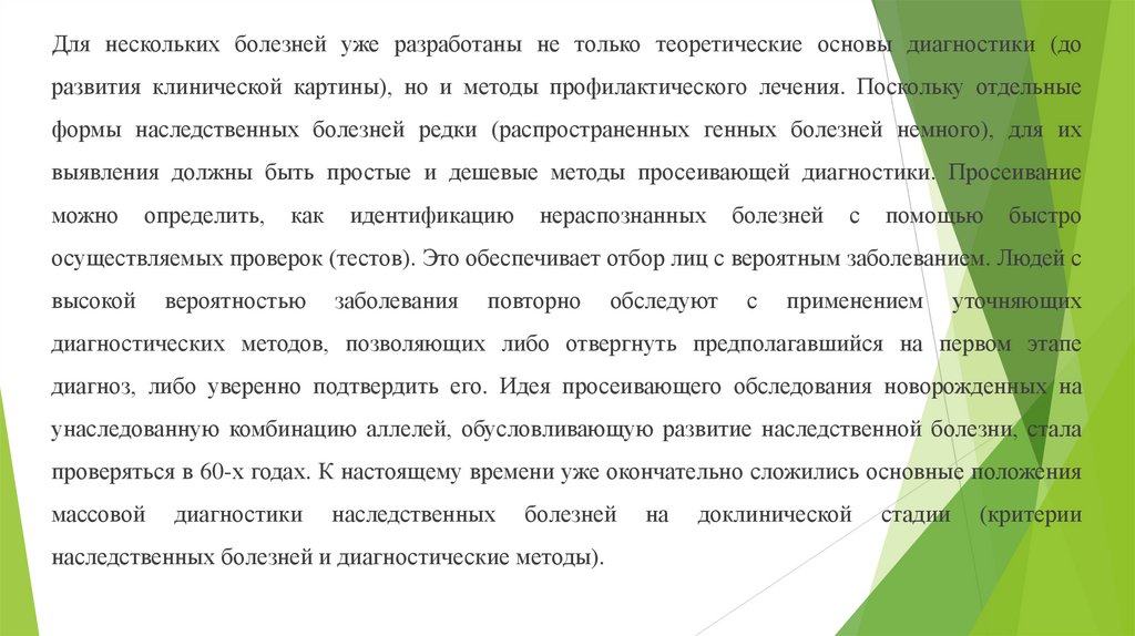 диагноз, либо уверенно подтвердить его. Идея просеивающего обследования новорожденных на