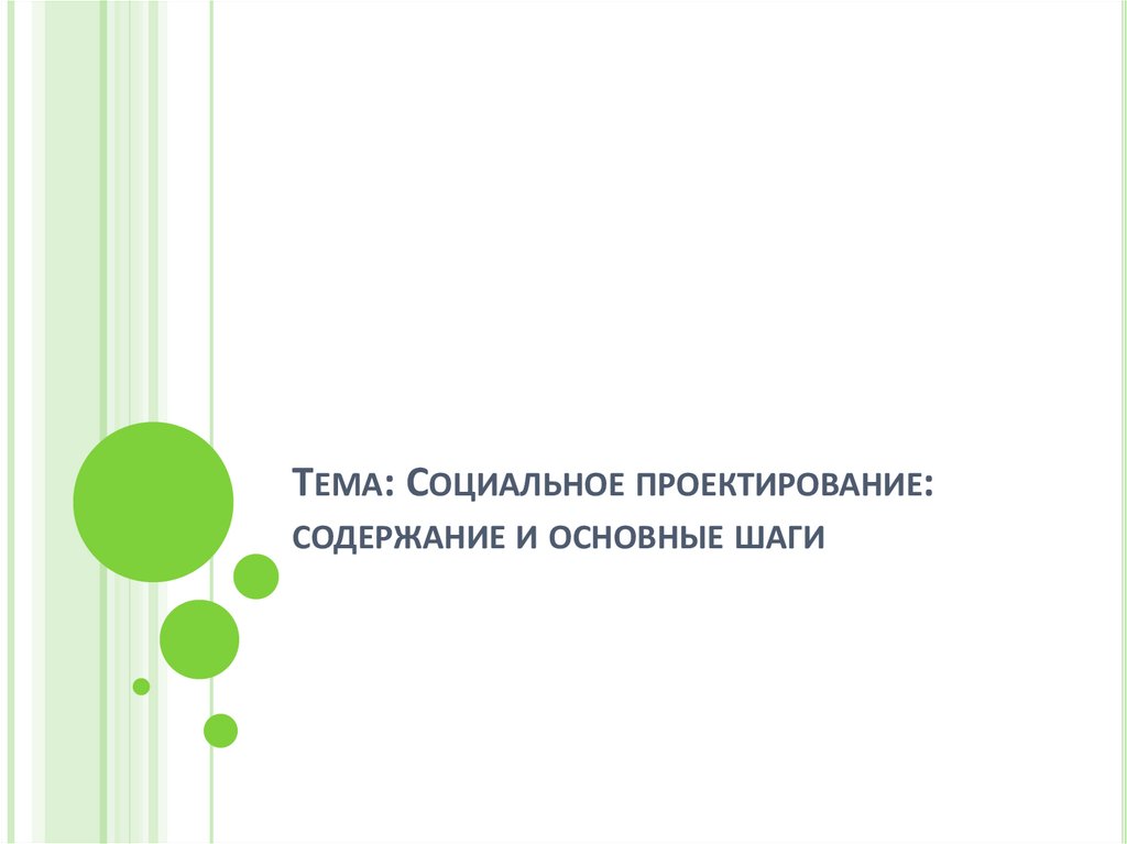 1. Тема: Социальное проектирование: содержание и основные шаги