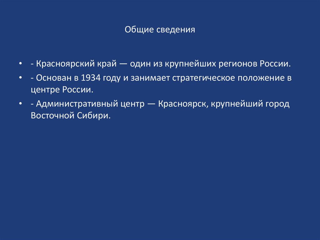 Общие сведения• - Красноярский край — один из крупнейших регионов России.