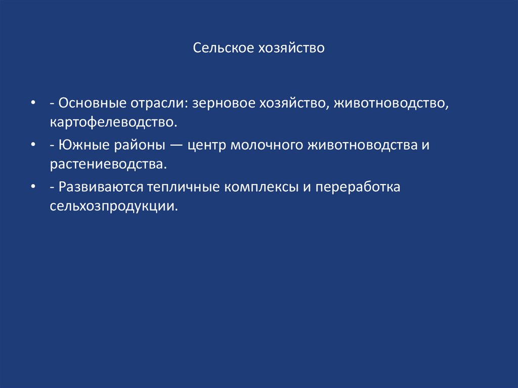 Сельское хозяйство• - Основные отрасли: зерновое хозяйство, животноводство,