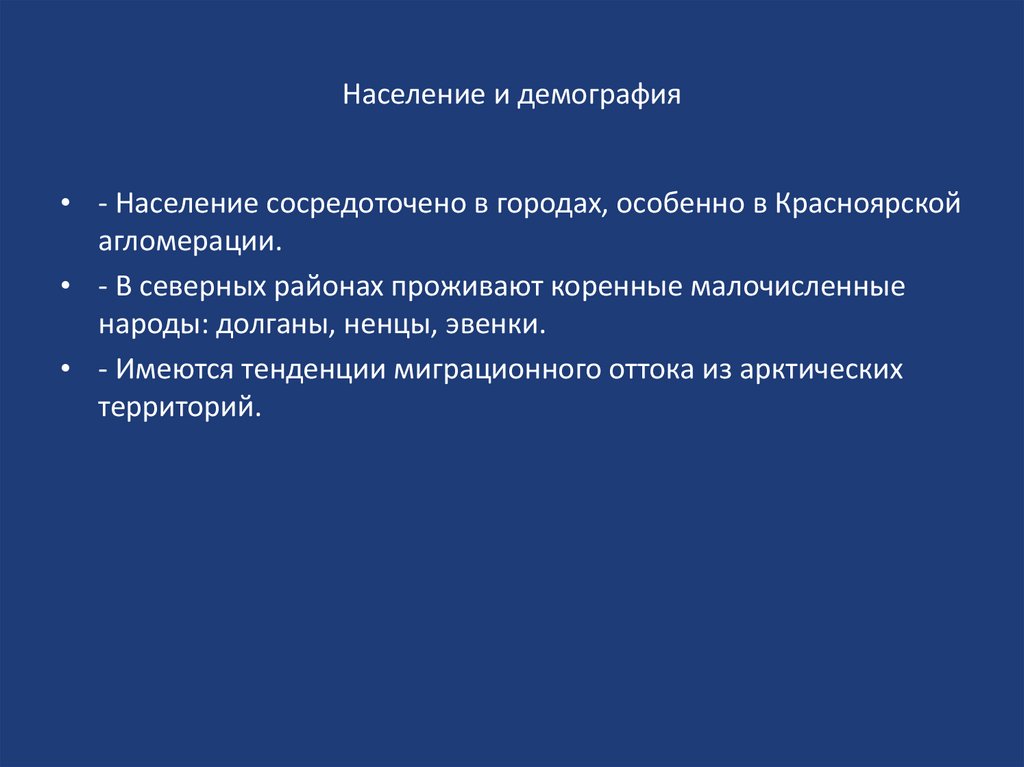 Население и демография• - Население сосредоточено в городах, особенно в Красноярской