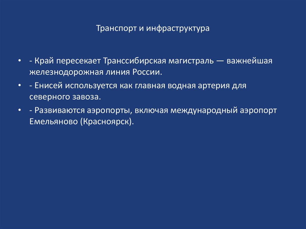 Транспорт и инфраструктура• - Край пересекает Транссибирская магистраль — важнейшая